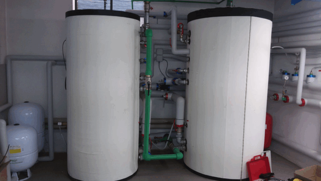 Il sistema comprende anche una Pompa di Calore di tipo acqua-acqua elio-assistita abbinata ai moduli ibridi della potenza di 30kW per la produzione di acqua calda per uso riscaldamento e sanitario abbinata a n.2 dissipatori di calore per la produzione di energia frigorifera in estate.